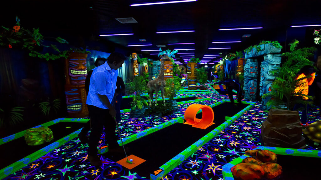 Black Light Golf is one of the fastest-growing trends in leisure activities in urban areas and is being built around the world in entertainment venues, sports and leisure centers, and shopping malls.